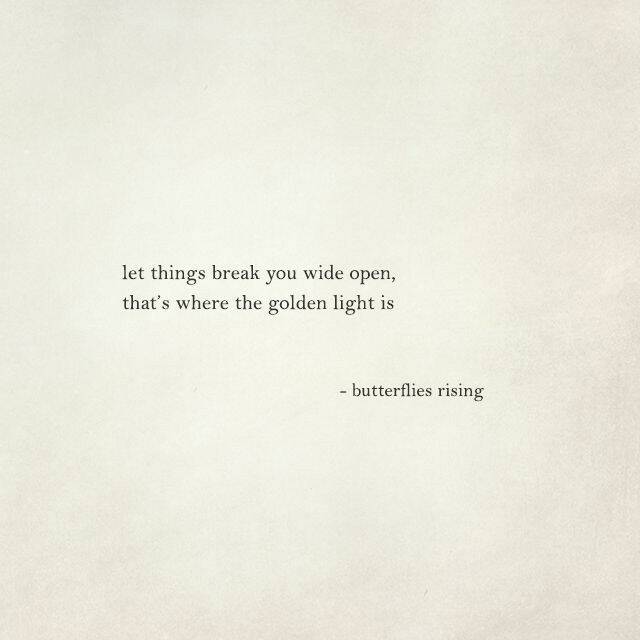 There is so much beauty in being broken. I read a quote once that said something like our hearts break to let more light in. This is what ive decided. When we are born, we are born with closed, finite hearts. We are born with innocence too. But as you grow a bit older things start to fill up in that heart of yours both good and bad, and your heart can handle it. But as you grow older and older your innocence gets stolen from you and you start to expirience more of the traumas of this world. Your heart gets heavy. Thats when its necessary for it to break. After it breaks all the light from the outside can come in and shine over all that darkness. Only then I beleive your heart becomes infinite. This process doesnt only happen once it will continuously occur. Thats where the beauty lies, because everytime you break you become a little more alive. You become exposed to your sensibility. Every crack tells you a little more about yourself your stregth, your courage, your perserverance, what you are made of.